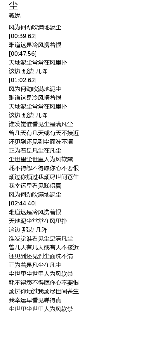| [02:38.09] | 风为何劲吹满地泥尘 |
