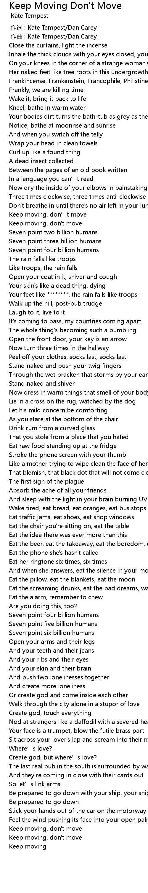 | [00:00.000] | 作词 : Kate Tempest/Dan Carey |