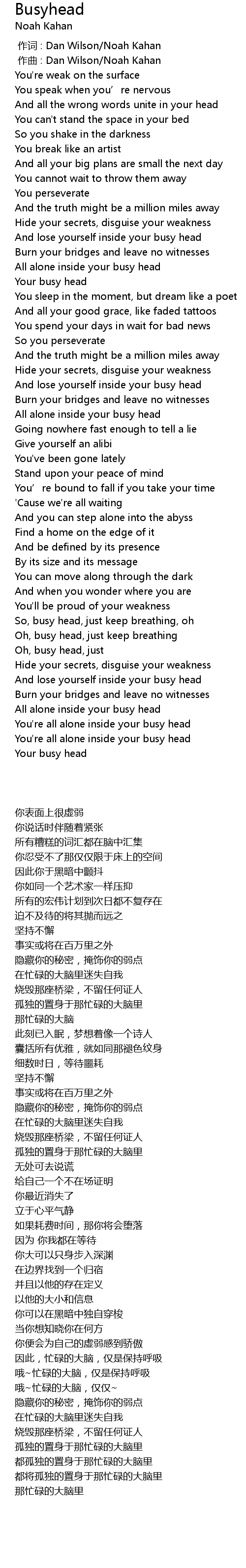 | [00:00.000] | 作词 : Dan Wilson/Noah Kahan |