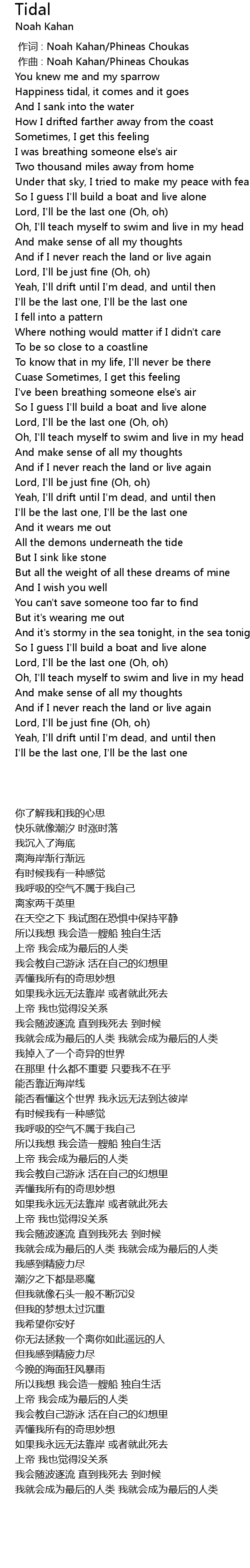 | [00:00.000] | zuo ci : Noah Kahan Phineas Choukas |