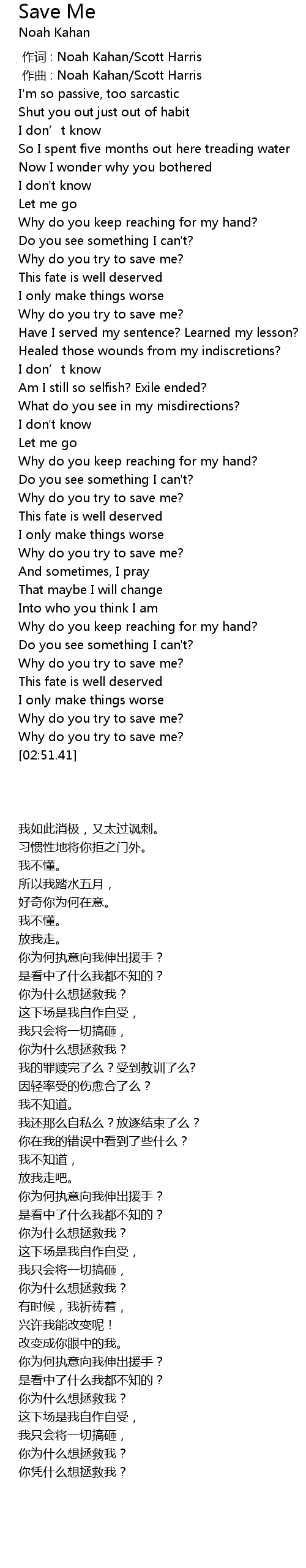 | [01:31.40] | 你为何执意向我伸出援手? |