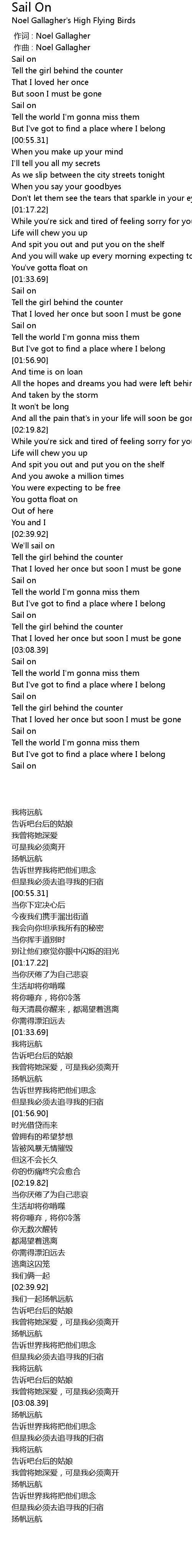 | [03:38.19] | Sail on |