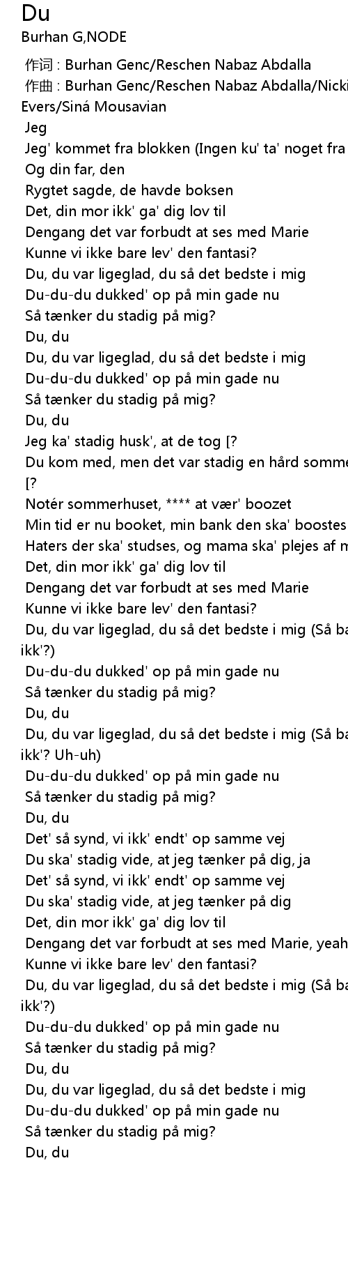 | [00:55.372] | Du, du var ligeglad, du s det bedste i mig |