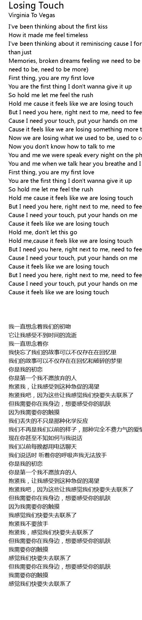 Hold me cause it feels like we are losing touch |