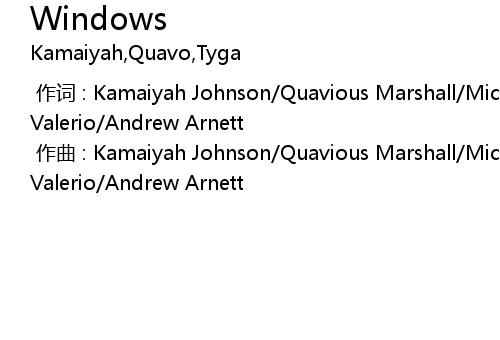 | [00:00.00-1] | zuò qǔ : Kamaiyah Johnson Quavious Marshall Michael Stevenson Jason Valerio Andrew Arnett |