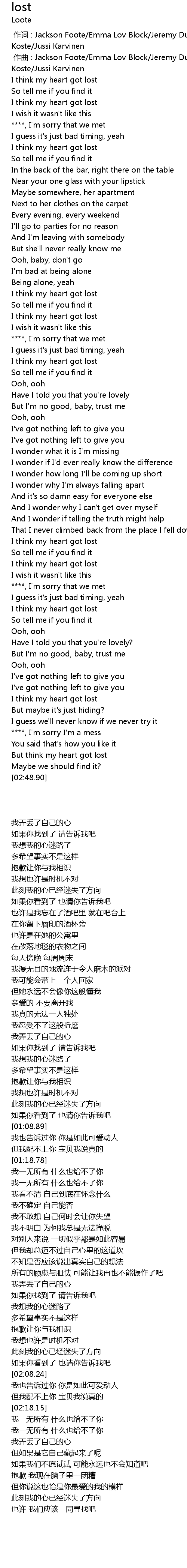 | [00:00.000] | zuo ci : Jackson Foote Emma Lov Block Jeremy Dussolliet Alex Koste Jussi Karvinen |