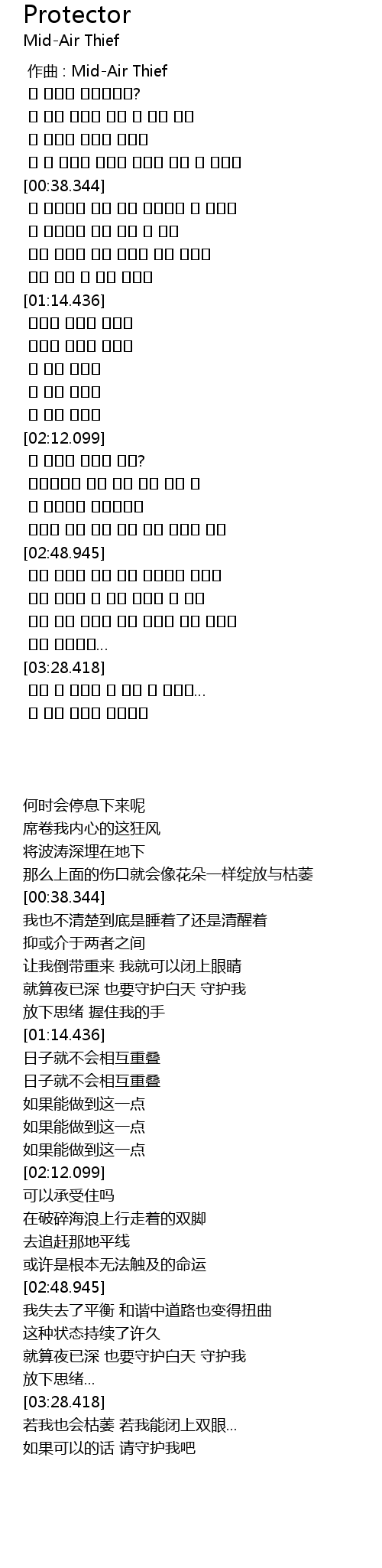 | [00:57.623] | 밤이 짙어도 낮을 지켜줘 나를 지켜줘 |