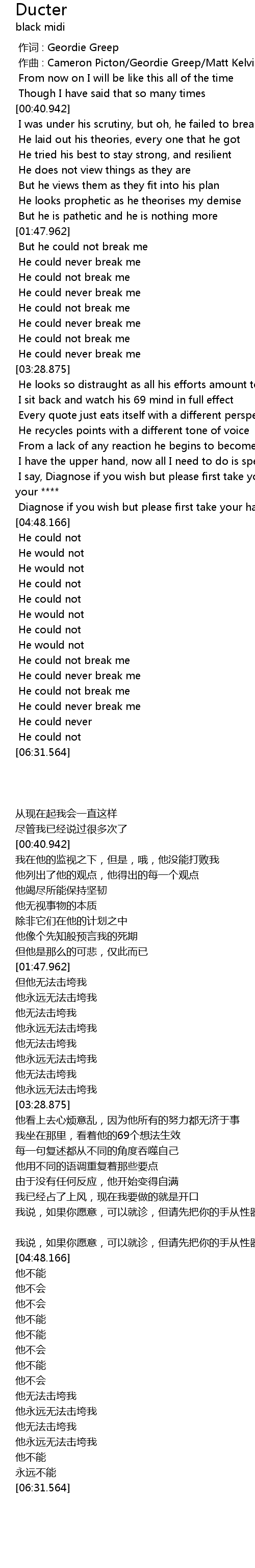 | [03:03.288] | 他无法击垮我 |
