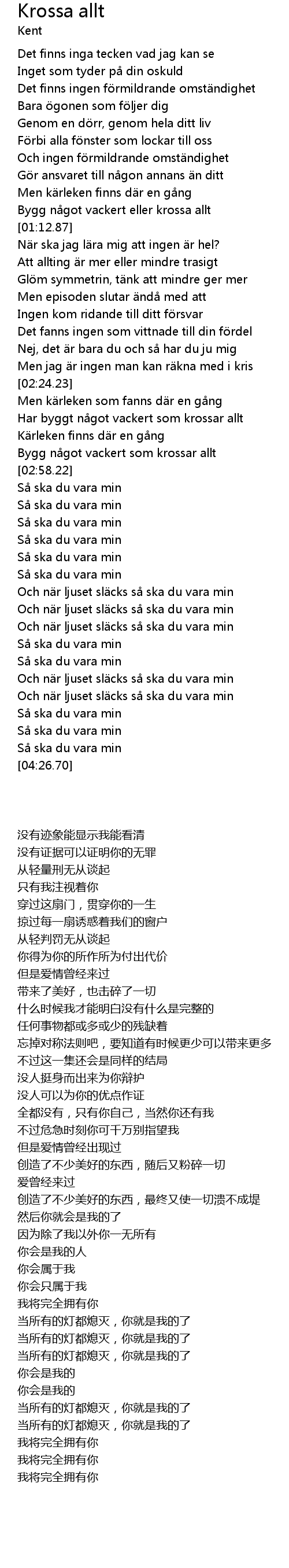 | [04:10.00] | Och n r ljuset sl cks s ska du vara min |
