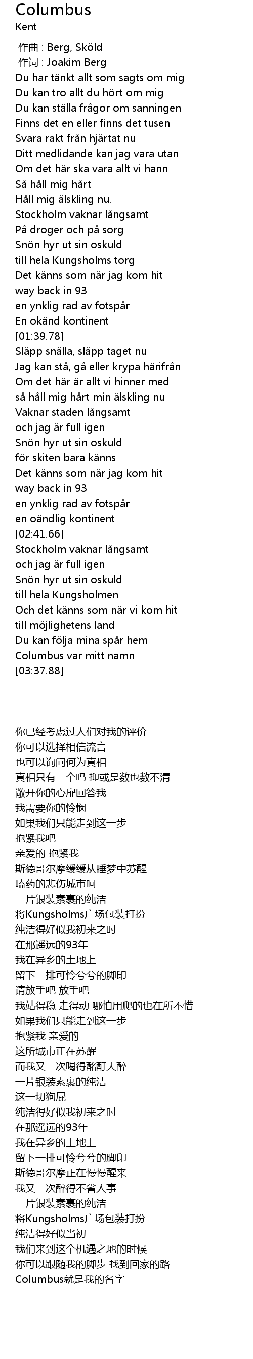 | [03:33.68] | Columbus var mitt namn |