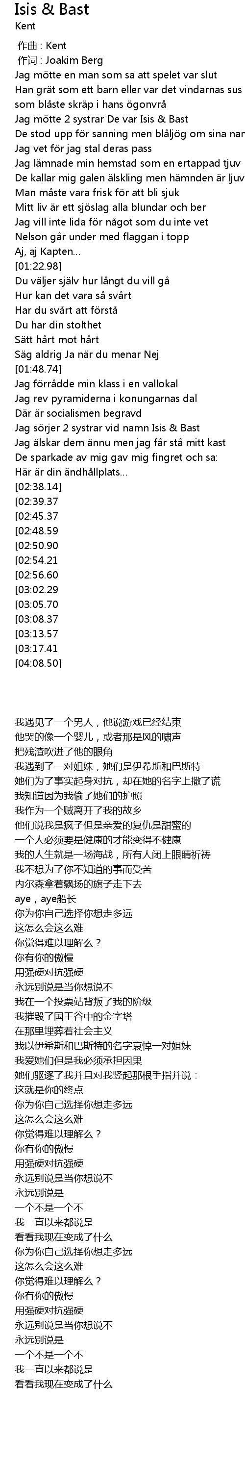 | [02:17.36] | Jag s rjer 2 systrar vid namn Isis Bast |