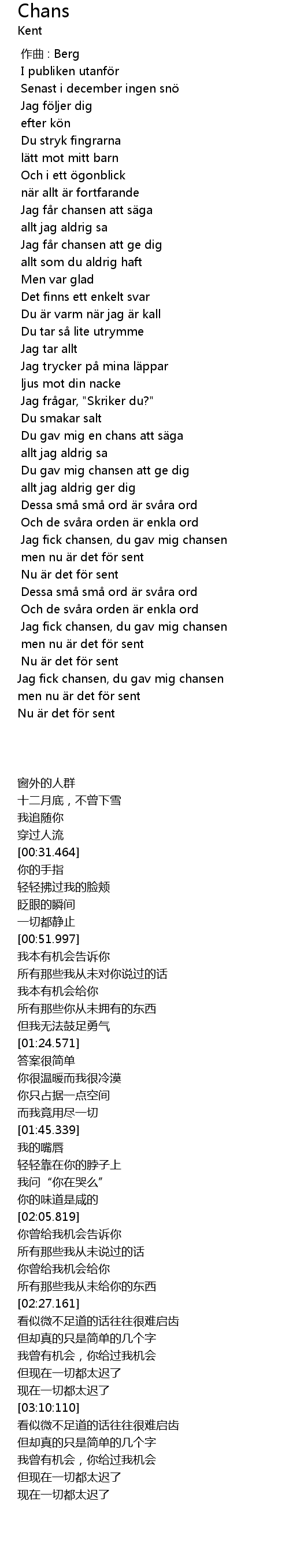 | [02:38.00] | Jag fick chansen, du gav mig chansen |