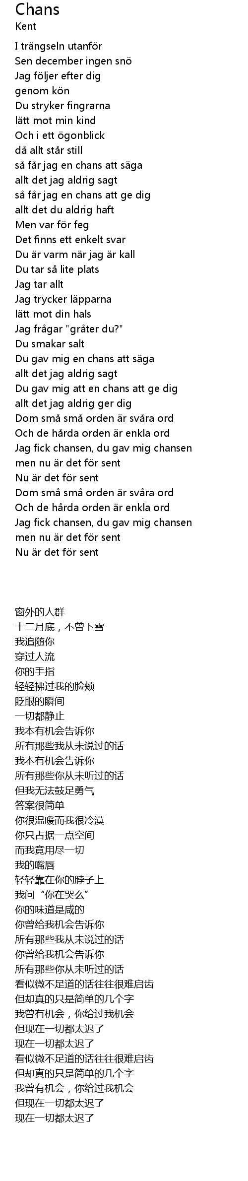 | [02:38.09] | Jag fick chansen, du gav mig chansen |