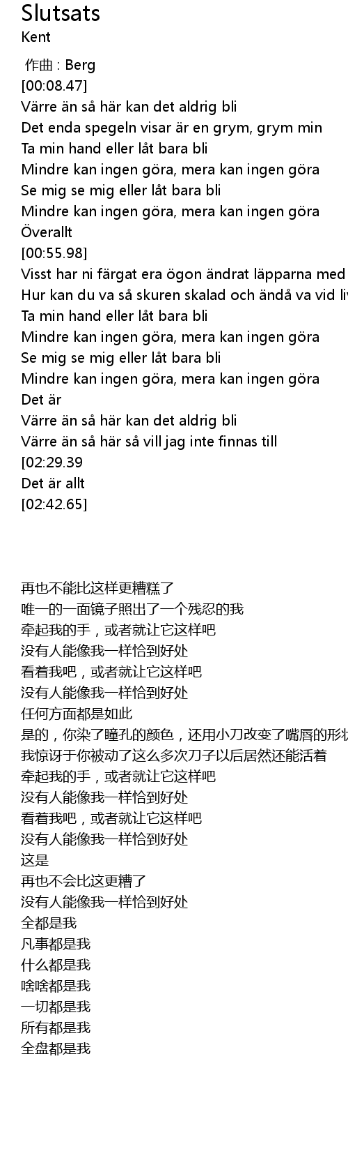 | 歌曲 | Slutsats |