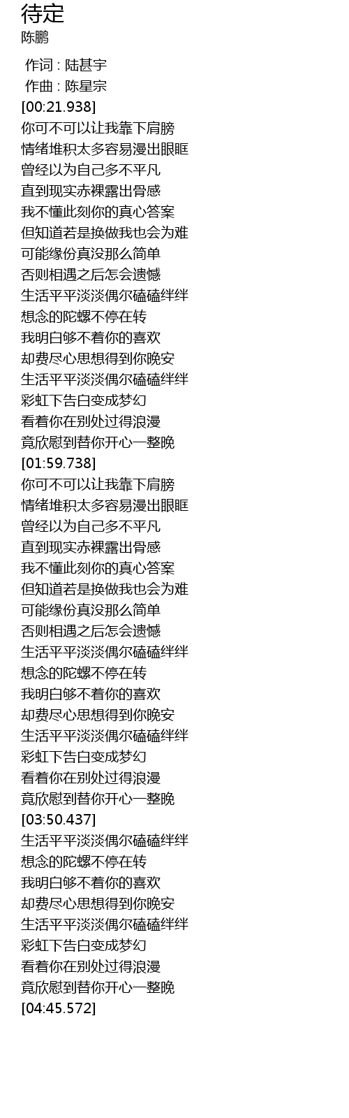 | [04:21.939] | 生活平平淡淡偶尔磕磕绊绊 |