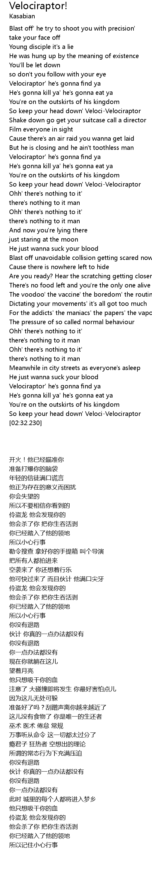 [00:49.200] So keep your head down' Veloci-Velociraptor