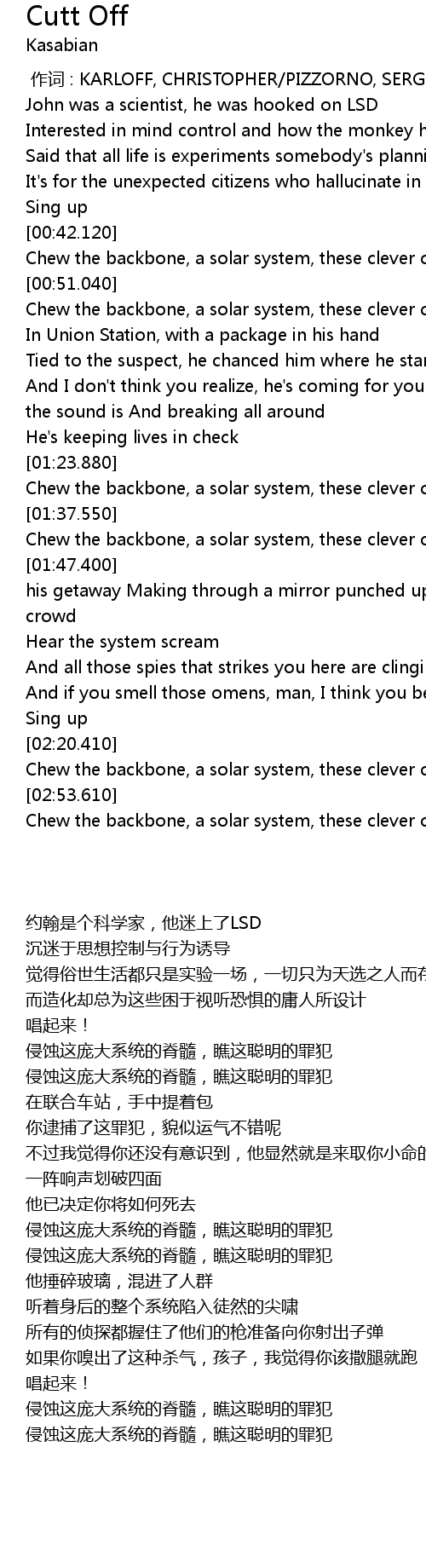 | [00:00.00] | zuò cí : KARLOFF, CHRISTOPHER PIZZORNO, SERGIO |