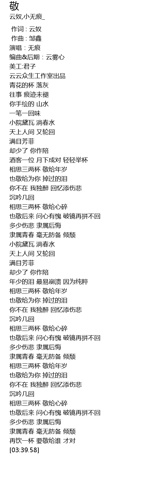 | [02:55.54] | 相思三两杯 敬给年岁 |