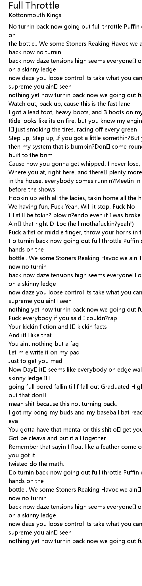 | o turnin back now going out full throttle Puffin crazy mad herb with our hands on the | |
