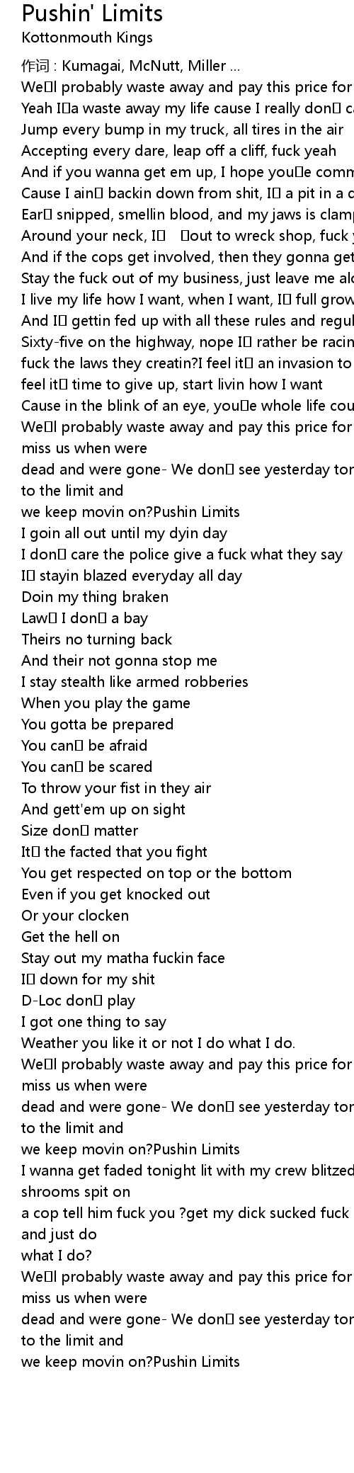 | 歌曲 | Pushin' Limits |