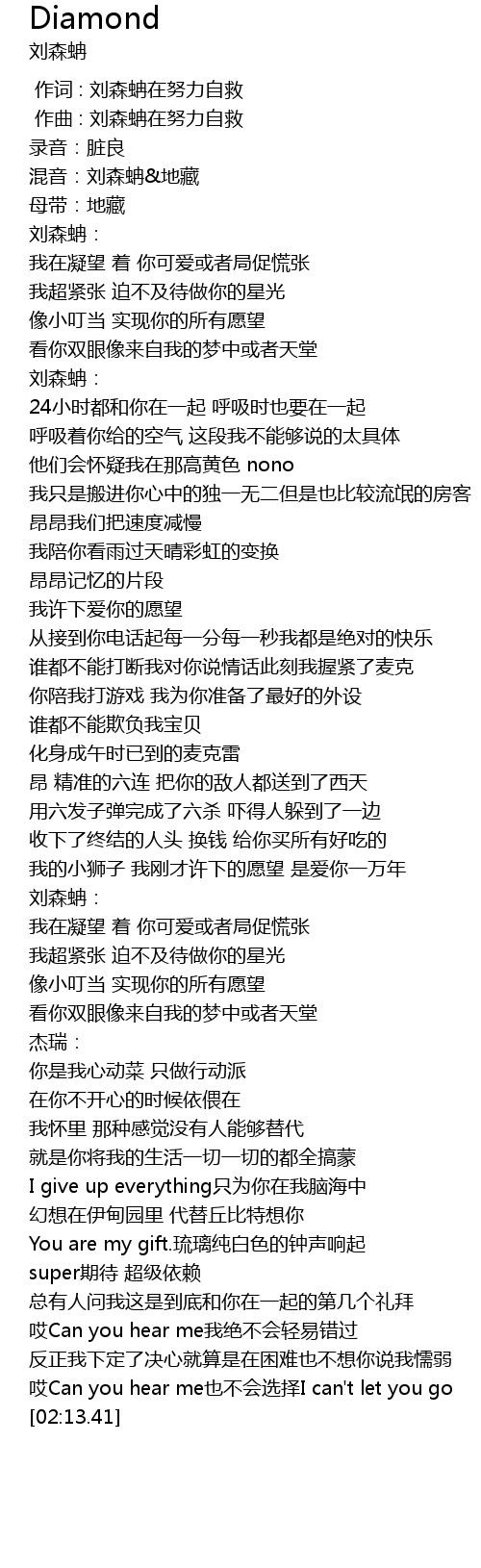 | [00:06.73] | 混音:刘森蚺&地藏 |