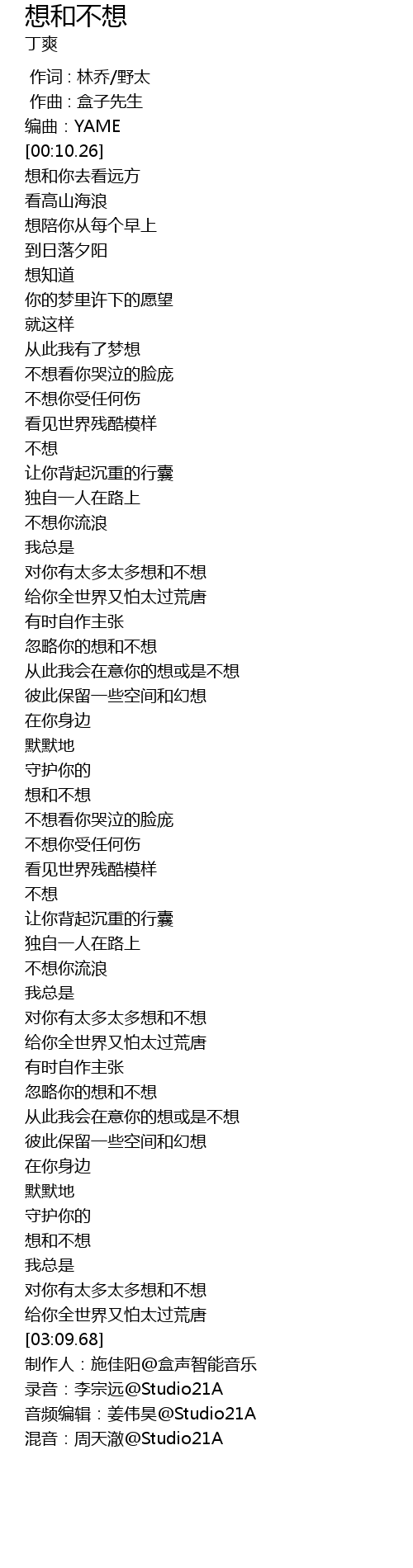 | [01:46.11] | xiǎng hé bù xiǎng |