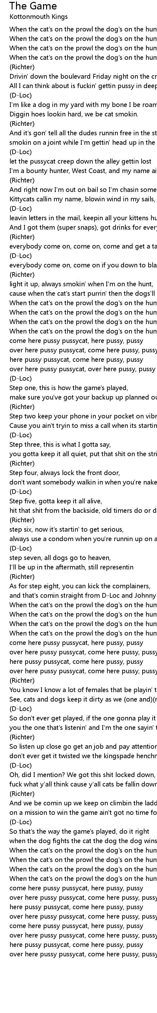 over here pussy pussycat, come here pussy, pussy (WOOF!)