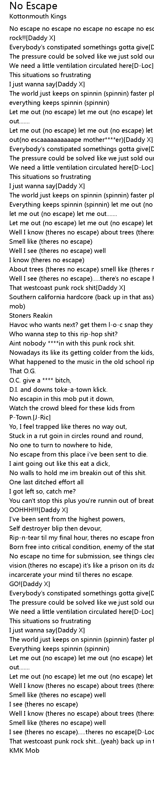 Let me out (no escape) let me out (no escape) let me out (no escape) let me out....... |