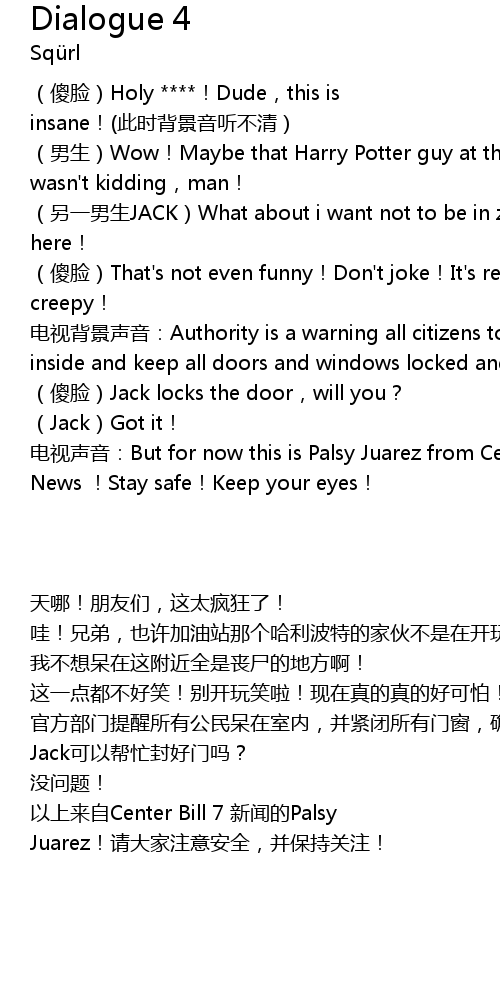 | [00:08.57] | lìng yī nán shēng JACK What about i want not to be in zombies around here! |