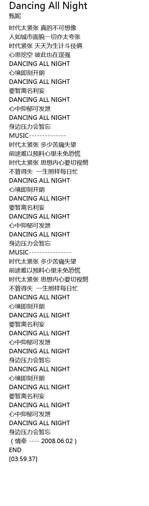 | [00:34.34] | DANCING ALL NIGHT |