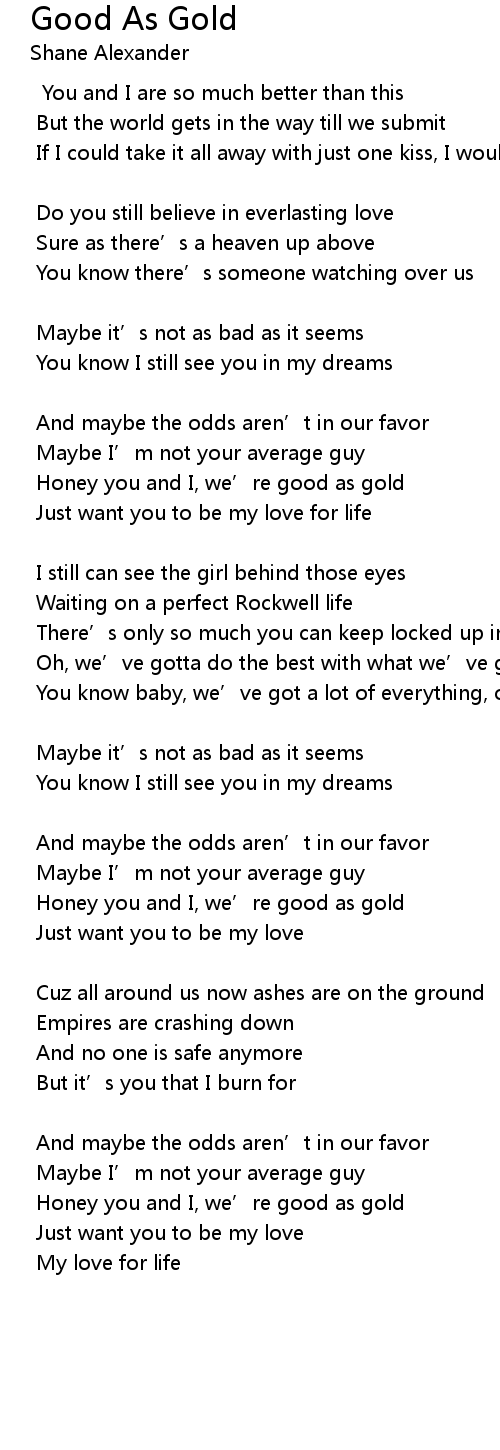| Honey you and I, we’re good as gold | |