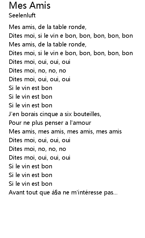 | Mes amis, mes amis, mes amis, mes amis | |