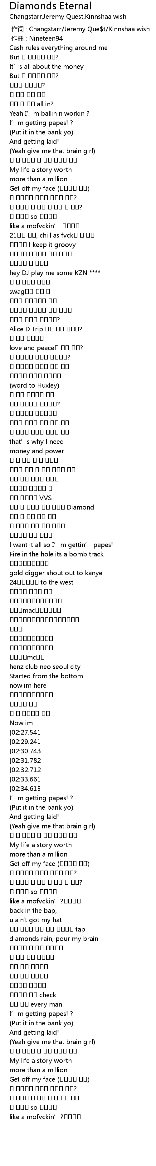 | [01:48.542] | 근데 난 살아온 인생 자체가 Diamond |