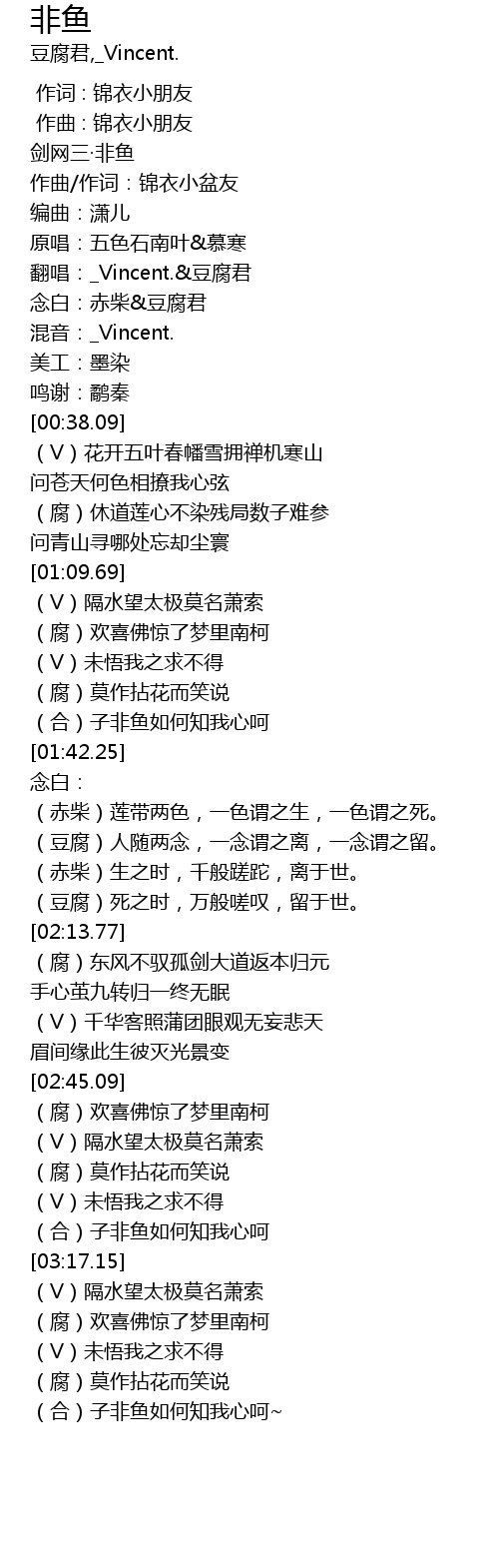| [03:42.06] | (合)子非鱼如何知我心呵~ |