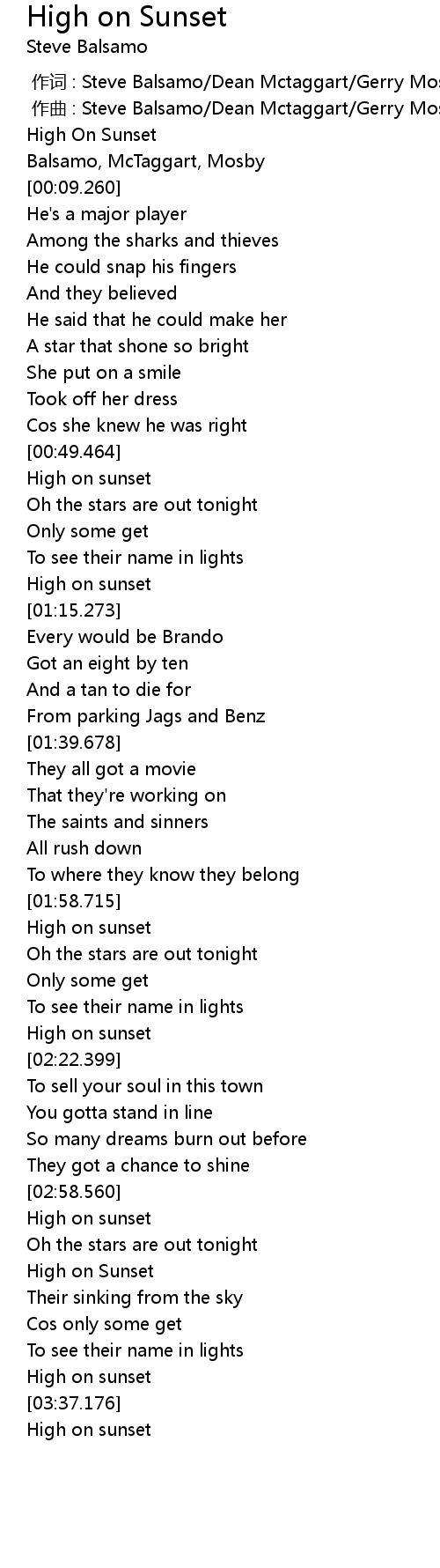 | [02:58.813] | High on sunset |