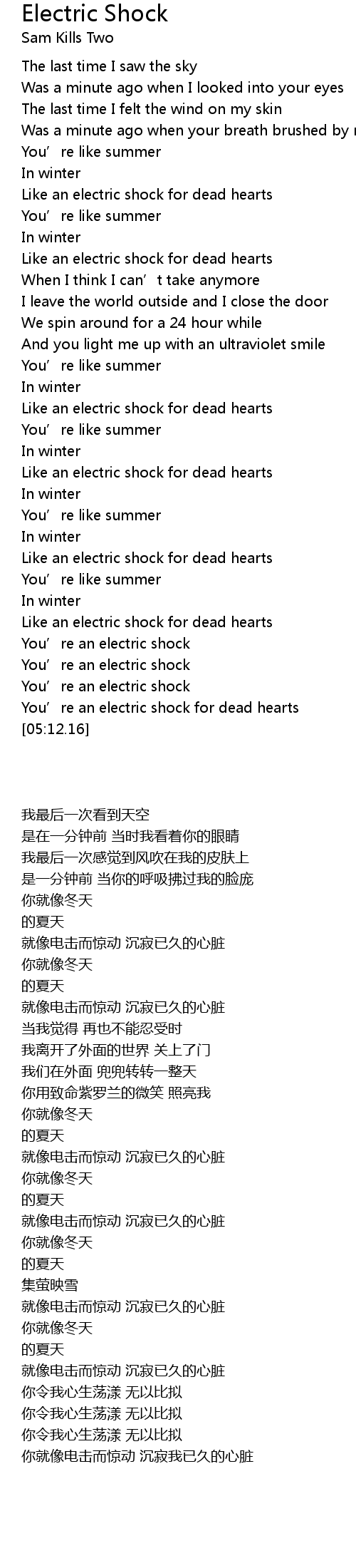 | [05:01.94] | You’re an electric shock |