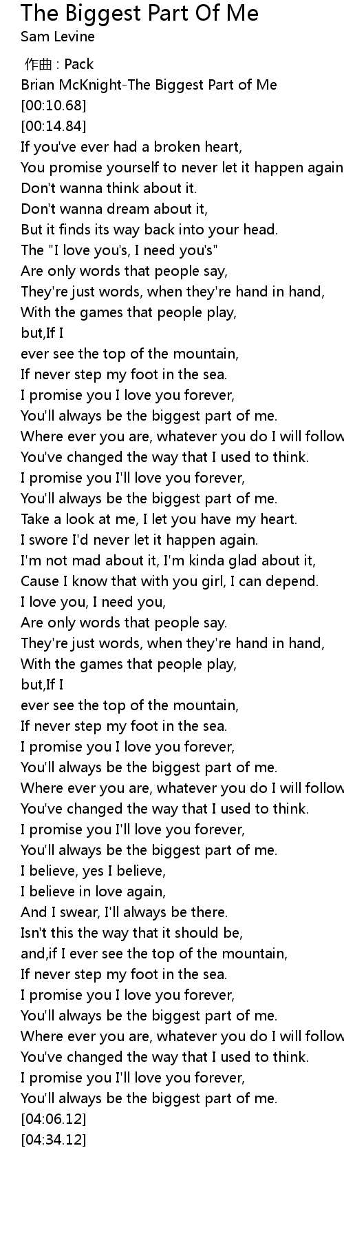| [00:06.22] | Brian McKnightThe Biggest Part of Me |