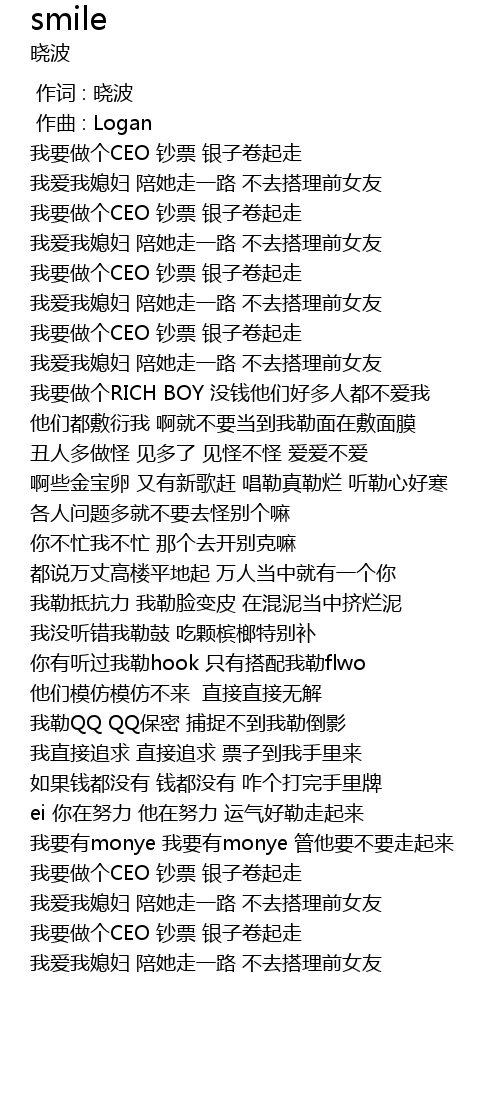 | [00:18.433] | 我要做个CEO 钞票 银子卷起走 |