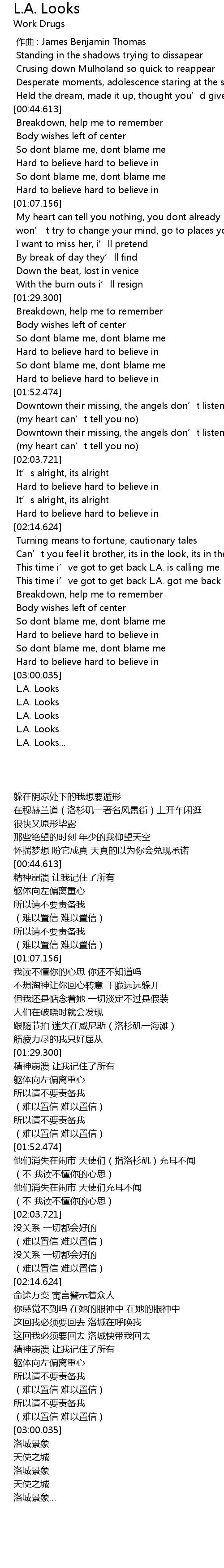 | [01:52.617] | 他们消失在闹市 天使们(指洛杉矶)充耳不闻 |