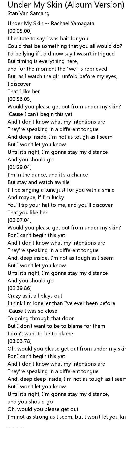 | [00:01.00] | Under My Skin Rachael Yamagata |