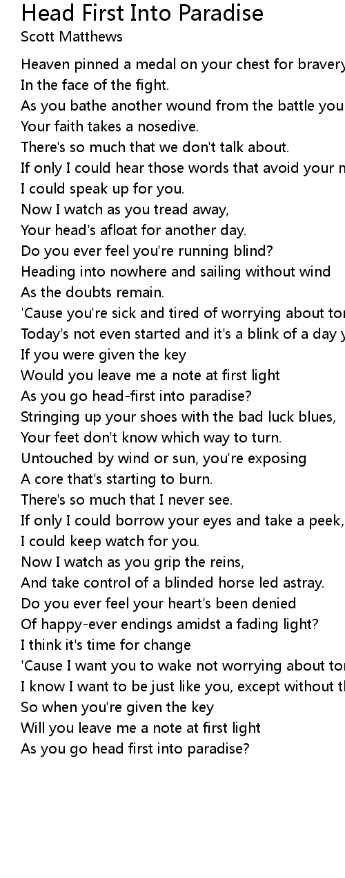 Head First Into Paradise 歌词