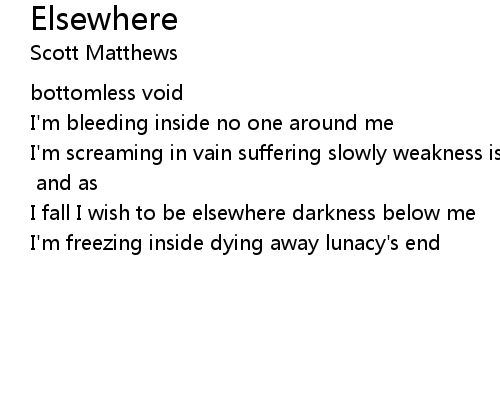 | I fall I wish to be elsewhere darkness below me | |