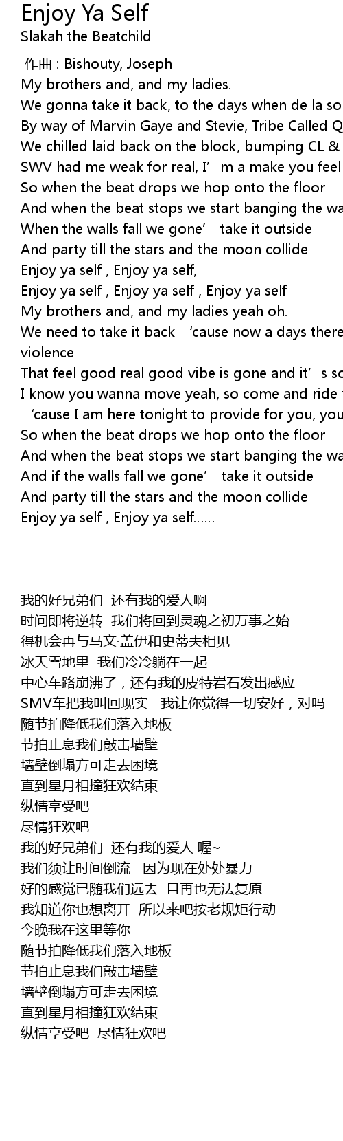 | [01:01.260] | Enjoy ya self , Enjoy ya self , Enjoy ya self |