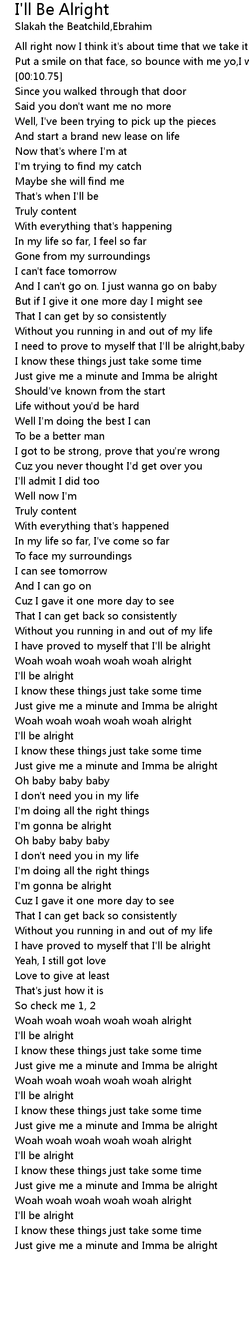 [04:11.44] Just give me a minute and Imma be alright