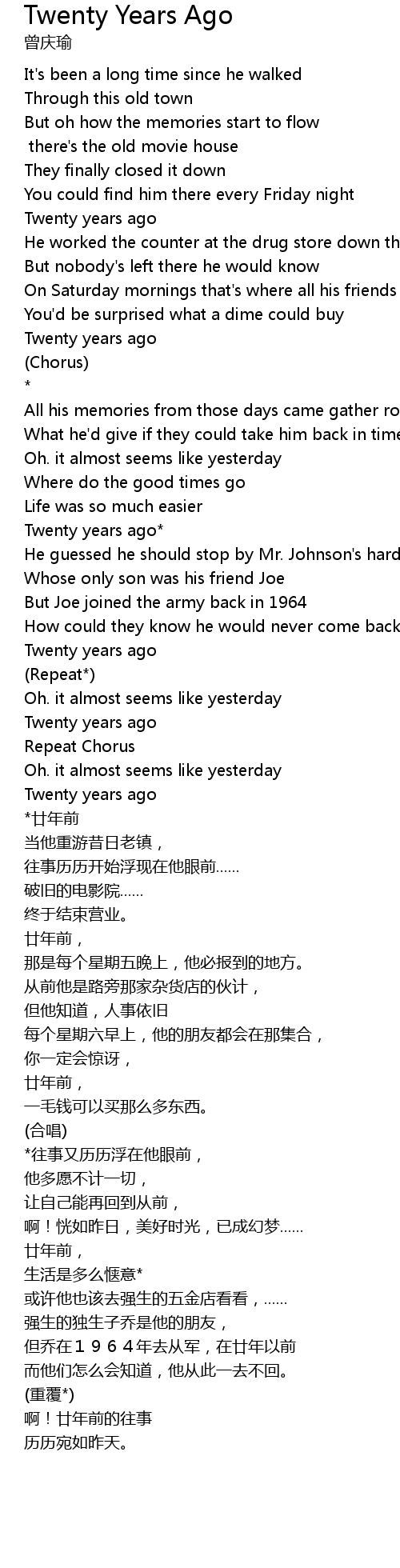 | *廿年前 | |
