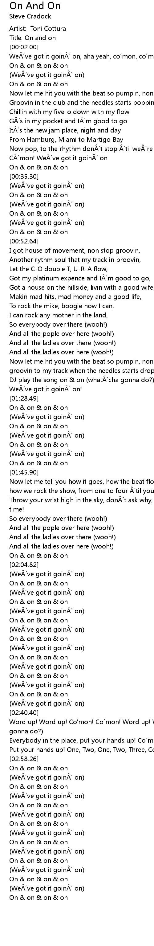 | [02:04.75] | On & on & on & on |