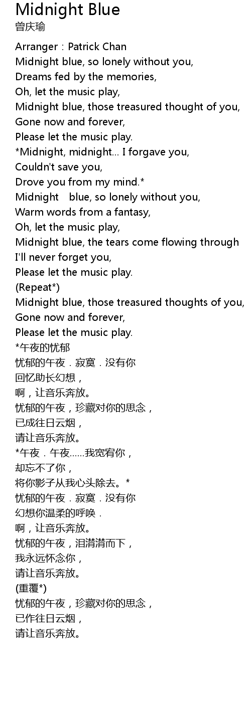 | Midnight blue, so lonely without you, | |