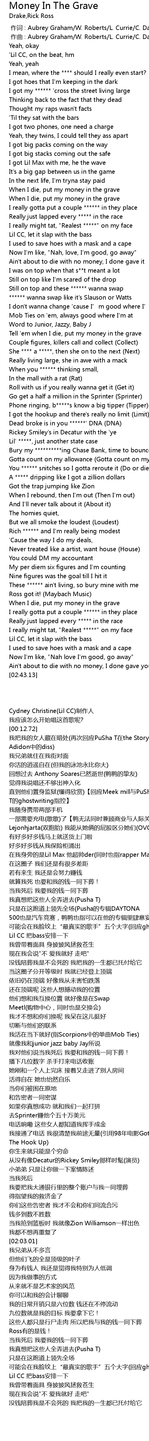 | [02:20.64] | These ****** ain't living, so bury mine with me |