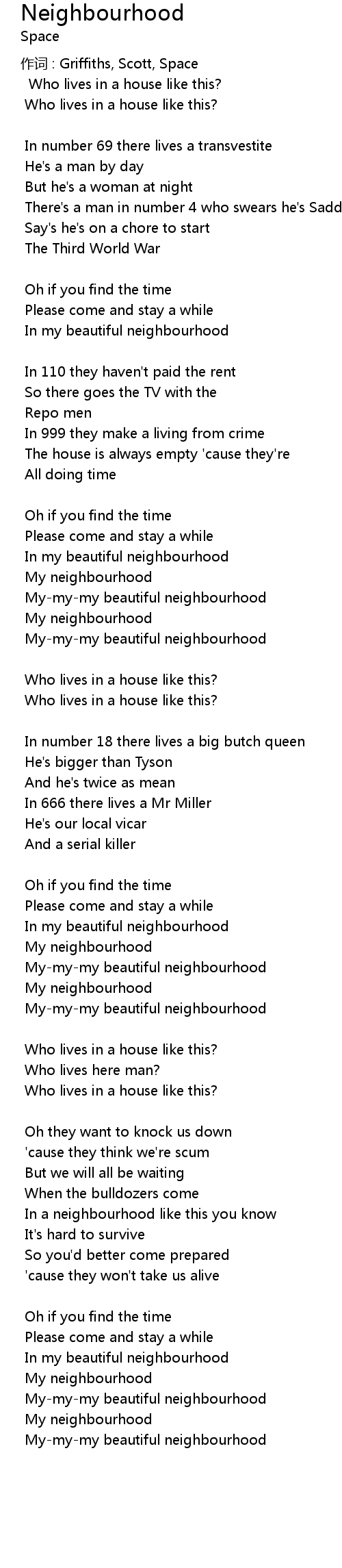 | 歌曲 | Neighbourhood |