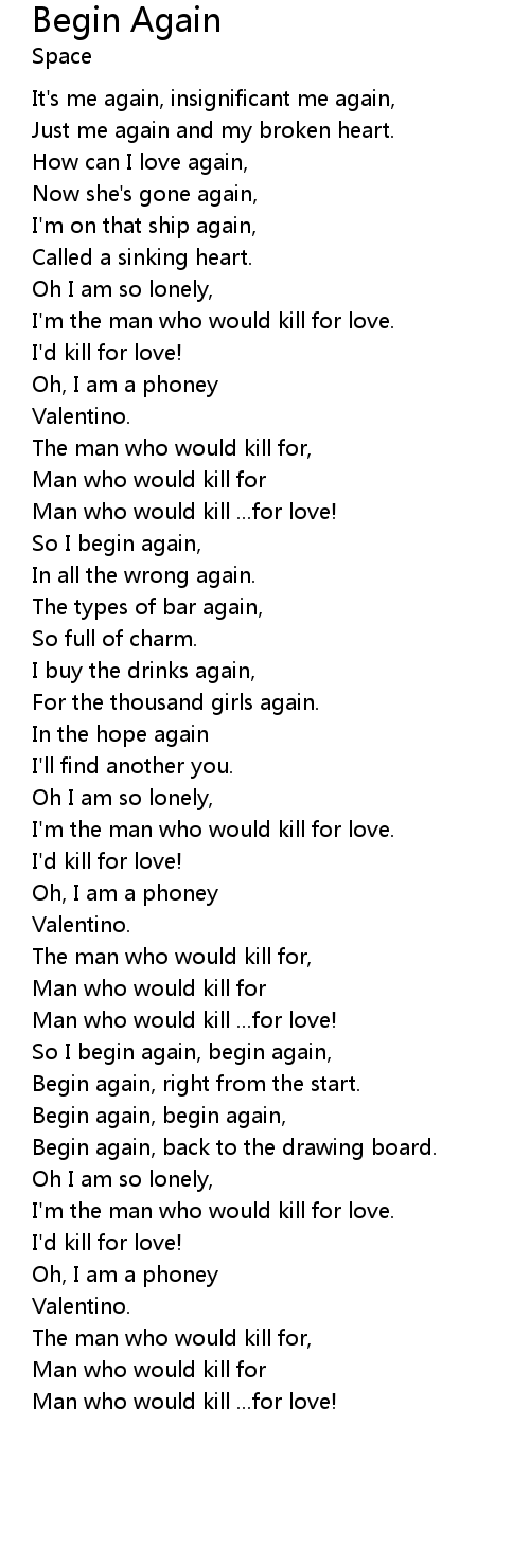So I begin again, begin again, |